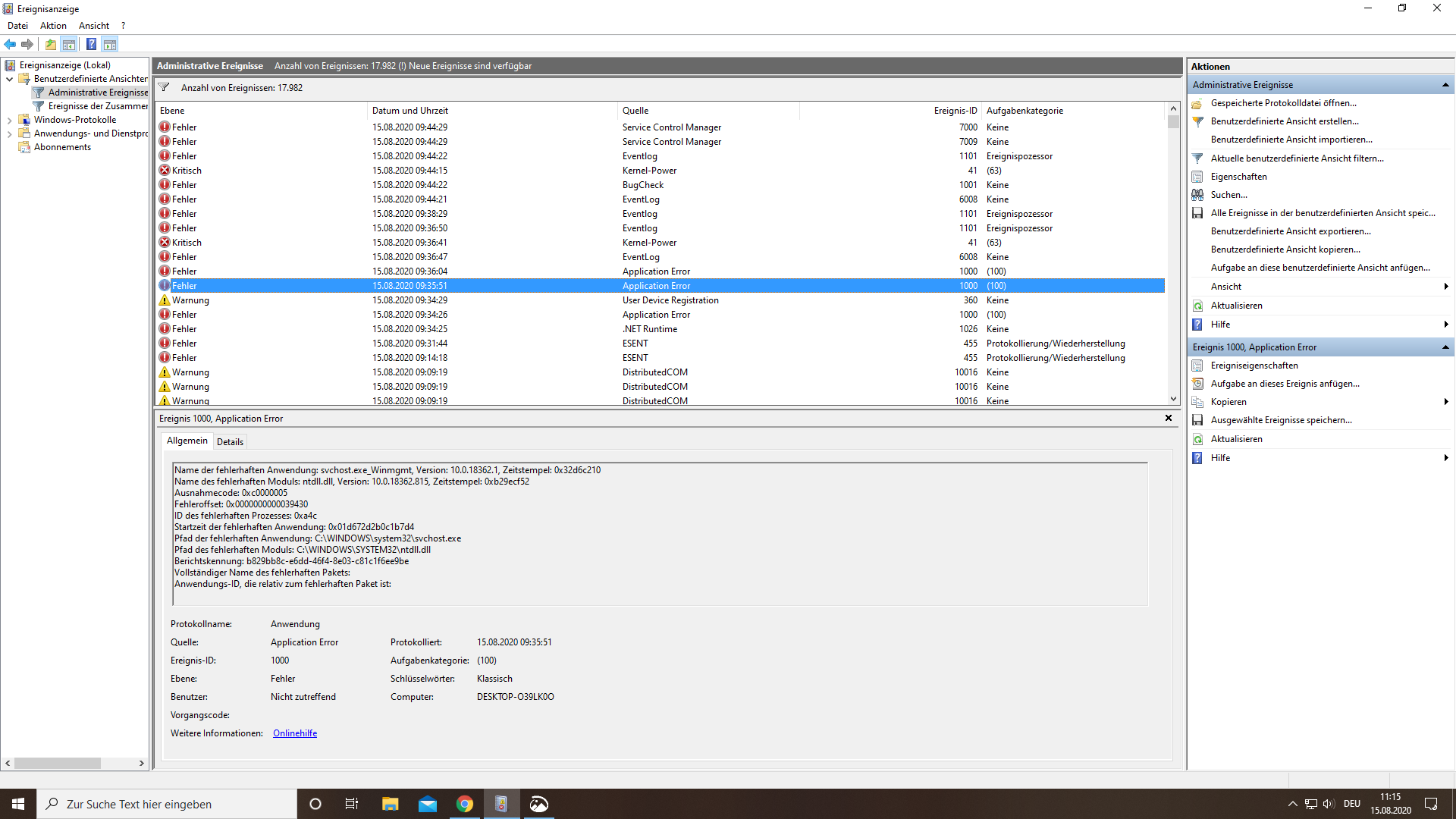 DAs Lustige ist, beim Zocken treten solche Probleme nie auf, egal ob intensive Spiele wie Red Dead 2 oder AC Odyssey oder ältere Spiele wie SC2 oder GTA San Andreas. Nur bei Youtube VIdeos kommt es zu wiederholenden Bluescreen-Orgien, ehe sich alles eine Stunde später beruhigt und für den restlichen Tag (meistens) normal läuft.