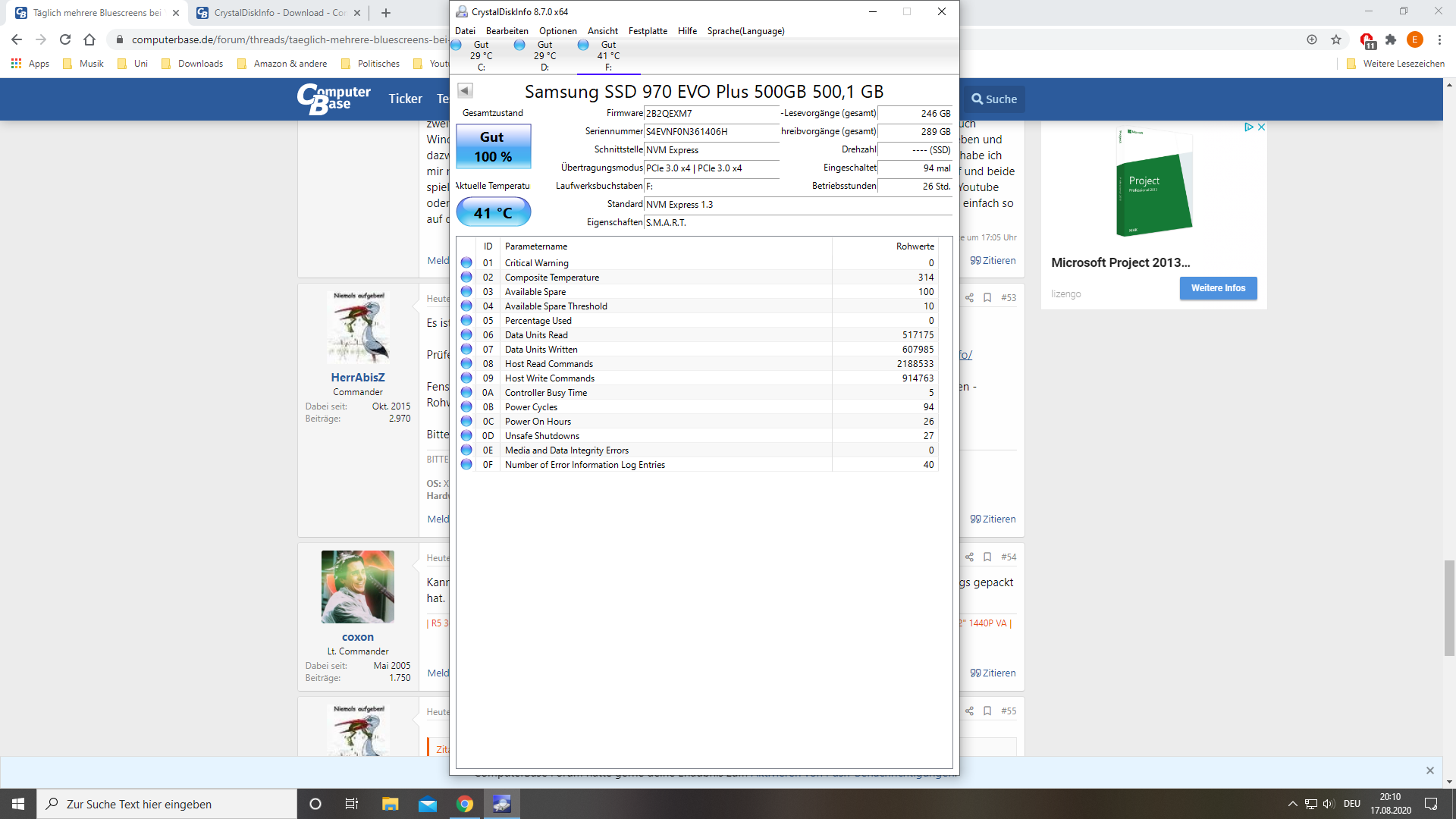 Western Digital SSD Dashboard einsetzen mal und Samsung Magician