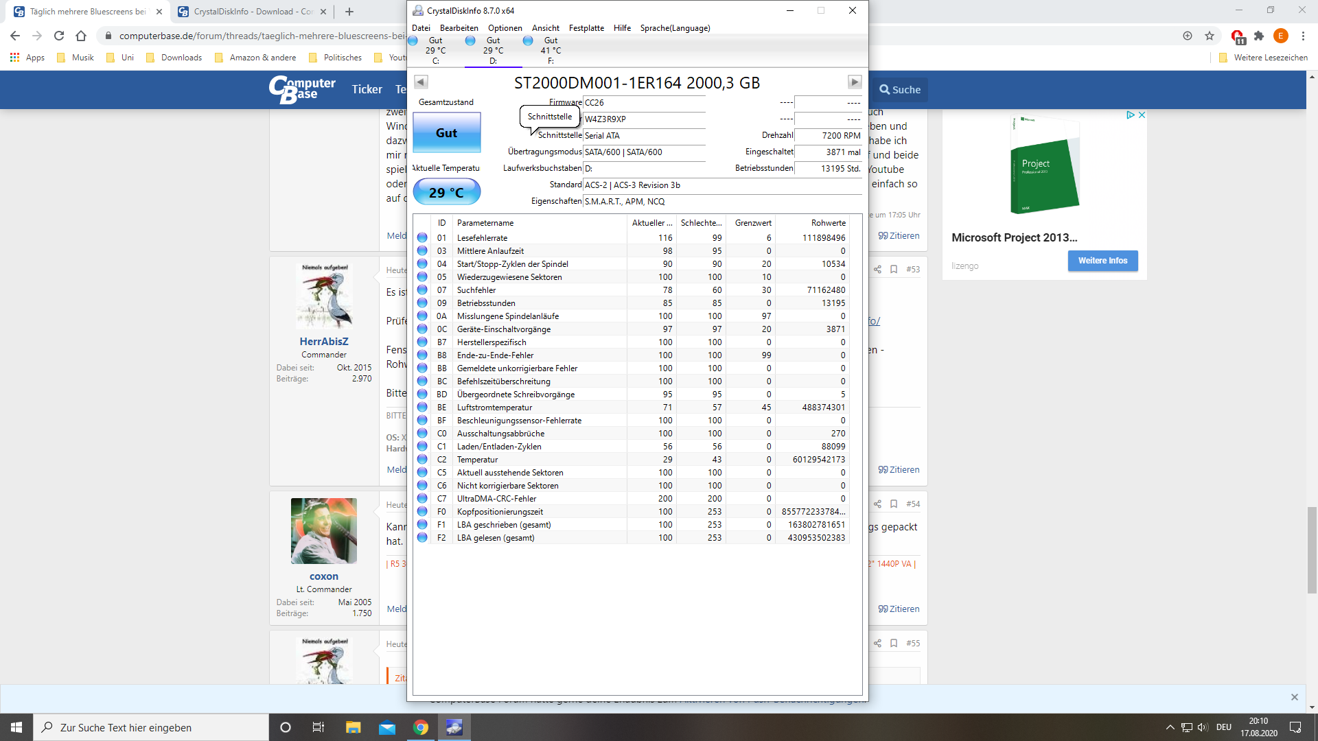 Prüfe bitte die HDD/SSD - https://www.computerbase.de/downloads/systemtools/festplatten/crystaldiskinfo/