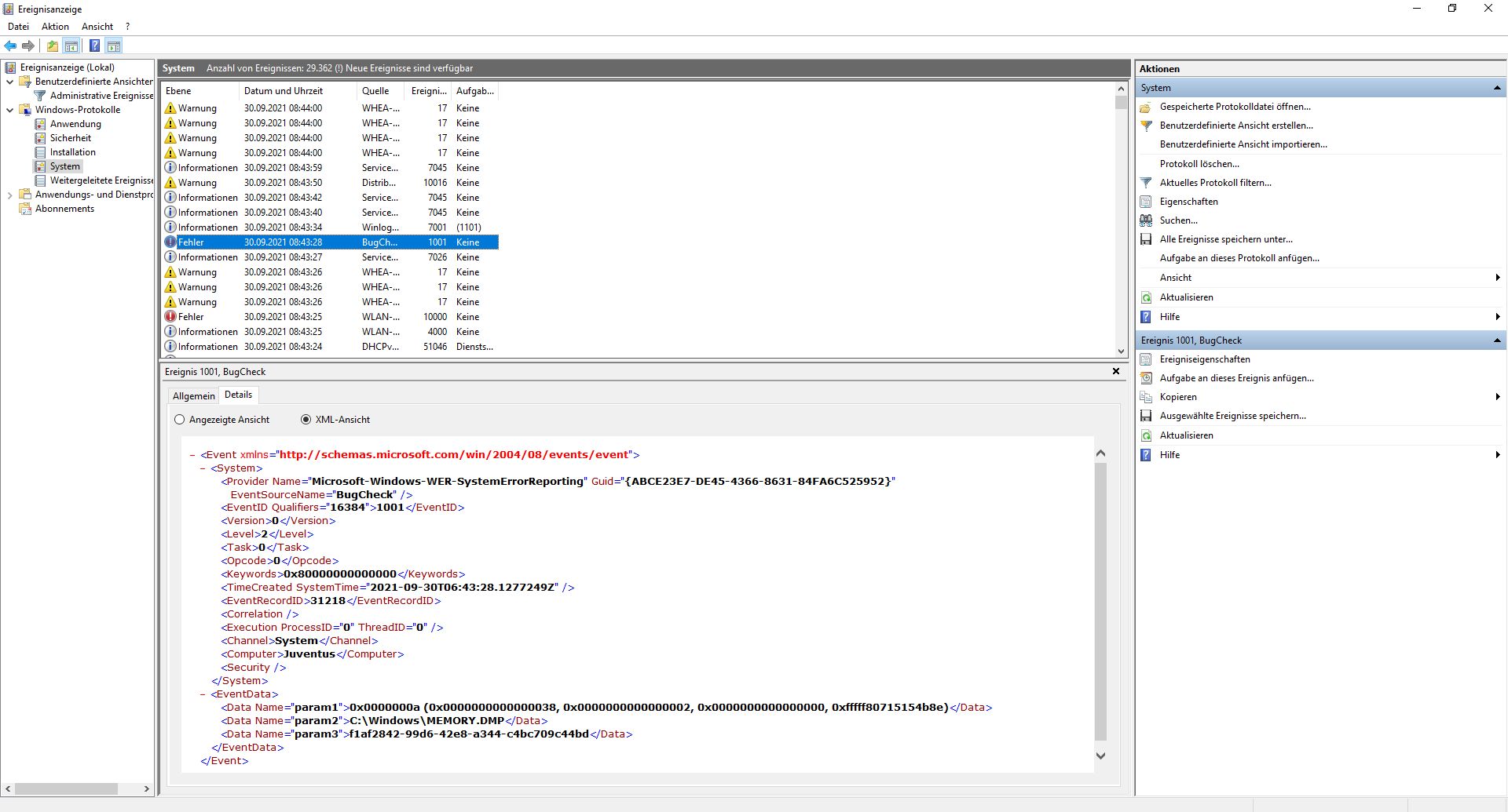 Dachte an möglichen Arbeitsspeicherfehler und ließ Ram-Diagnose 4 Stunden lang laufen ohne Fail. Neue SSD auch getest und keine Fails. Hab nähmlich im Juli mir eine neue SSD gekauft und alles vorbildlich geklont und es gab auch nie Probleme.