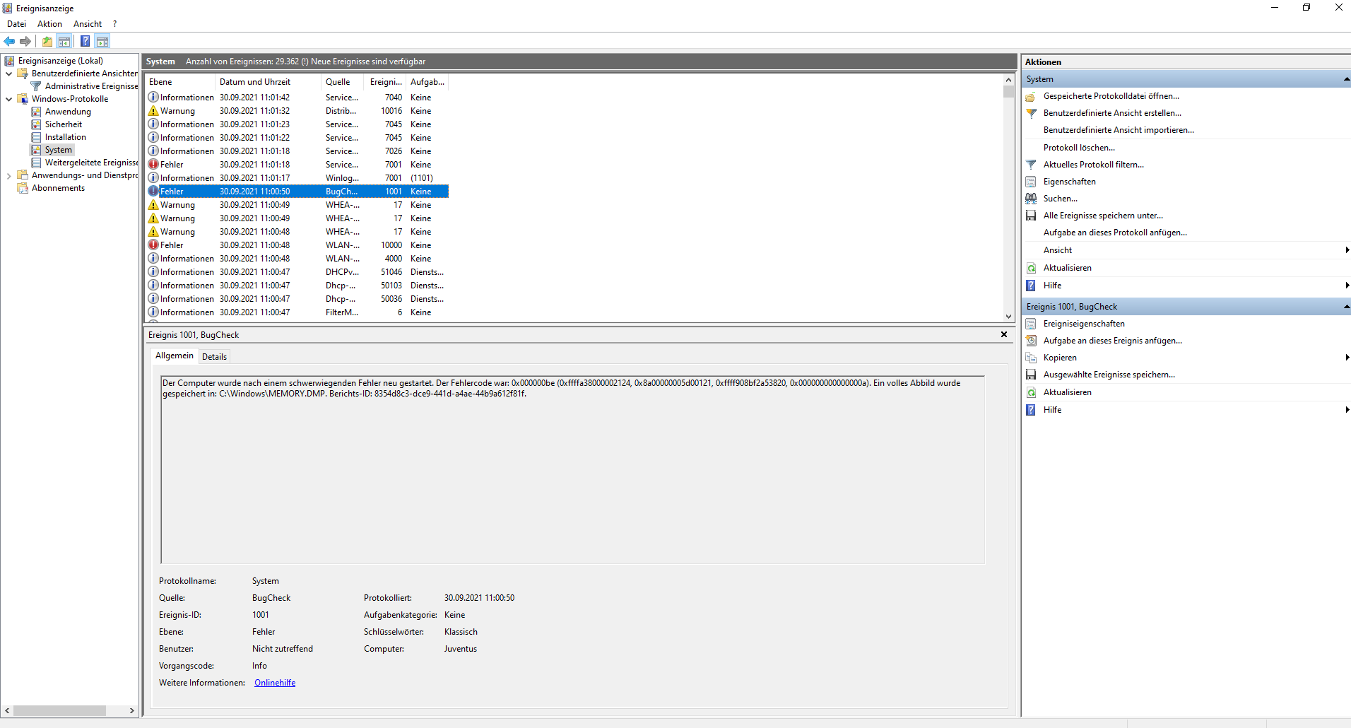 ich habe seit ca. 1 Woche täglich Bluescreens aus dem nichts. Ich surfe normal rum->bluescreen. Ich zocke->bluescreen. Egal was ich mache und es scheint auch nicht wirklich spezifisch an etwas zu liegen, sondern kommt ganz zufällig wenn das System einfach kein bock mehr hat. Meistens sagt mir der Bluescreen Memory_Corrupt oder Pfn_List_Corrupt.