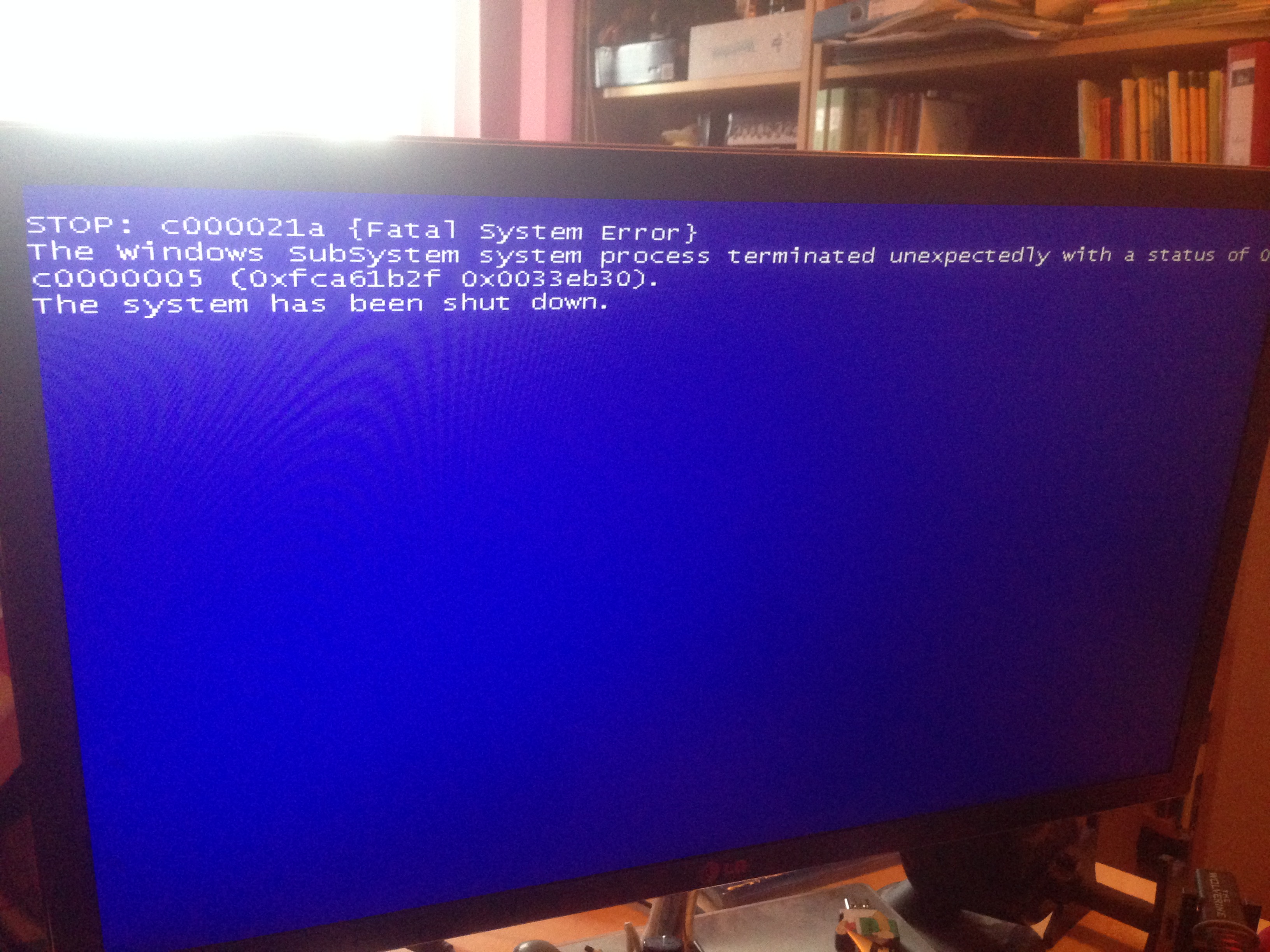 stop c00002la fatal system error the windows subsystem process terminated unexpectedly with a status of 0c0000005 (0xfca61b2f 0x0033eb30)