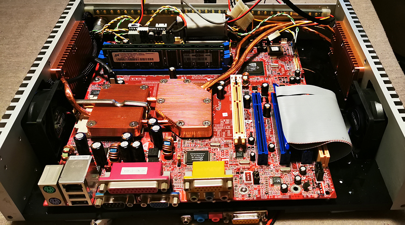 Es sieht so aus das ein neues Window rein muss da das Netzteil an einer anderen Stelle rückt. Der Lüfter muss direkt über das Netzteil platziert sein. Leider. Im Case ist es zu heiß für das Netzteil. Vermutlich. Durch den Plattformwechsel spare ich etwa 20W TDP. Zusätzlich können keine normalen Rammodule mehr eingebaut werden da sie gegen die Graka stoßen. Also musste ich mir low Profile Ram organisieren die ich bei Electromyne gefunden habe. Aktuell sind 2Stk. PC3200 512MB Module drin. Leider gibt es die nicht mehr am Markt. Bei Elektromyne habe ich jedoch 256MB Module gefunden. Das reicht noch für alles aus was ich machen möchte. Höchstanforderung ist GTA Vice City.