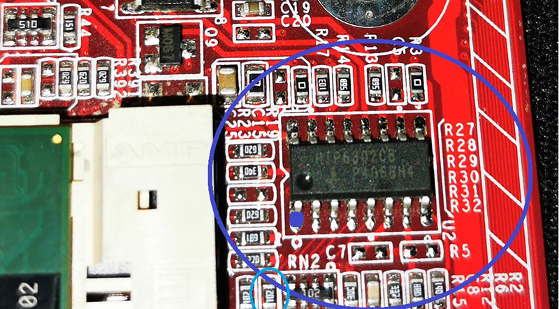 Ich musste einen SMD Widerstand (R22) auslöten was auf Anhieb nicht so einfach erschien weil das Bauteil nur etwa 1x2mm groß ist. Praktisch war es aber kein Problem. Hinzu kommt das der IC (Hip6302) der für die Vcore verantwortlich ist modifiziert werden muss. Um genau zu sein muss ein Pin entfernt werden. VID 4. Damit haben wir eine feste Vcore von 1.2V