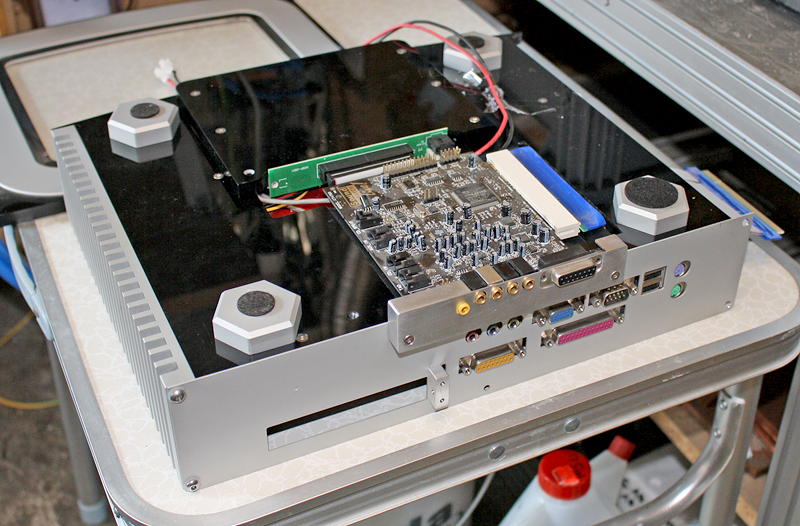 Inzwischen habe ich wieder alles abgebaut und warte nun auf Zeit bis ich das Board vermessen kann. Danach erfolgt die Konstruktion des Heatpipekühlers und eines neuen IOShilds für das Case/Board. Abschließend muss dann noch die Aufnahme für das Msatamodul als neue Festplatte mit einkonstruiert werden sowie auch die Soundkarte.