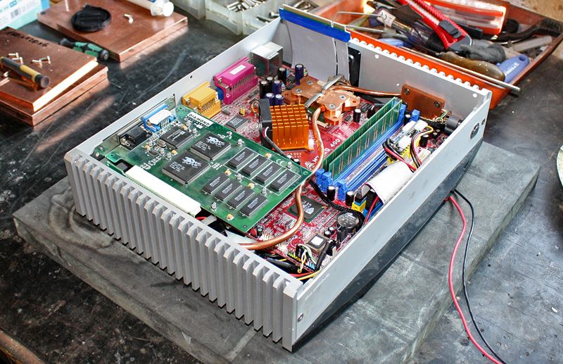 es sieht nicht schlecht aus für den Projektabschluss. Ich möchte das Projekt ende des Jahres abschließen. Ich habe einige Tests mit den MSI P4MAM-V gemacht insbesondere mit einen V-mod wo man einen IC Pin vom Mainboard auslöten muss um im Bios die Vcore zu reduzieren. Der Mobile Celeron 2,5Ghz ist schnell genug für alle Anwendungen.