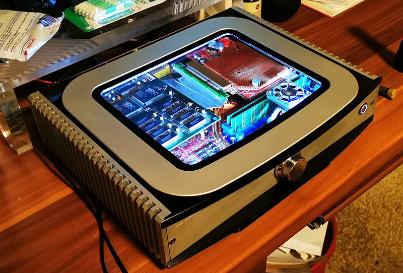 Und das mehr an Kupfer sieht im Gehäuse nun auch toll aus. Sowie sich das Soundproblem unter Dos geklärt hat, fräse ich noch eine Abdeckung für die Soundkarte. Aber auch das ist auch