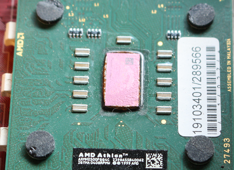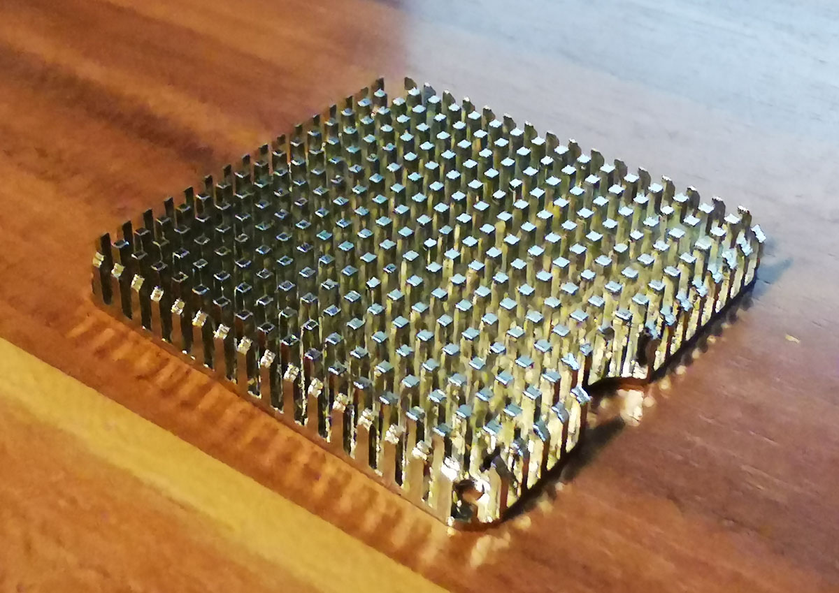 Der Vollständigkeithalber ein Bild von der CPU. Sollte mal etwas kaputt gehen, habe ich noch 2 dieser Mainboards und 2 andere CPU die man nutzen kann. Eine alte Voodoo1 und Speicher liegen auch noch im Schrank.