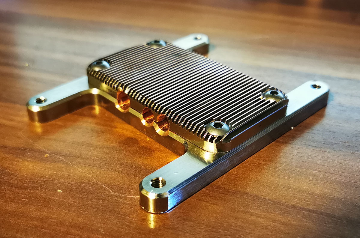 Den Originalkühler habe ich entfernt und einen 6mm Passivkühler gefräßt + eine 4mm Backplate.