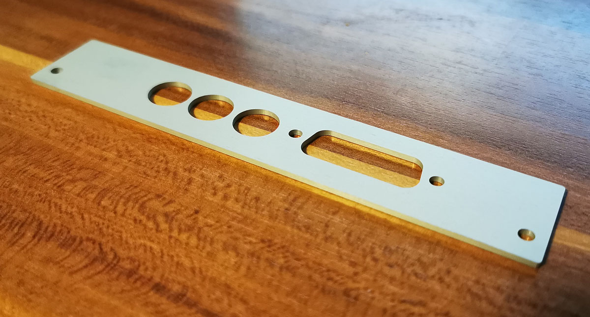 Ich versuche die 3 Aluteile im nächsten Monat zu fräsen. Dann kann ich die zum Nickler schicken und kann gleich die Teile eloxieren lassen. Unter anderen auch den Drehknopf des Potis.