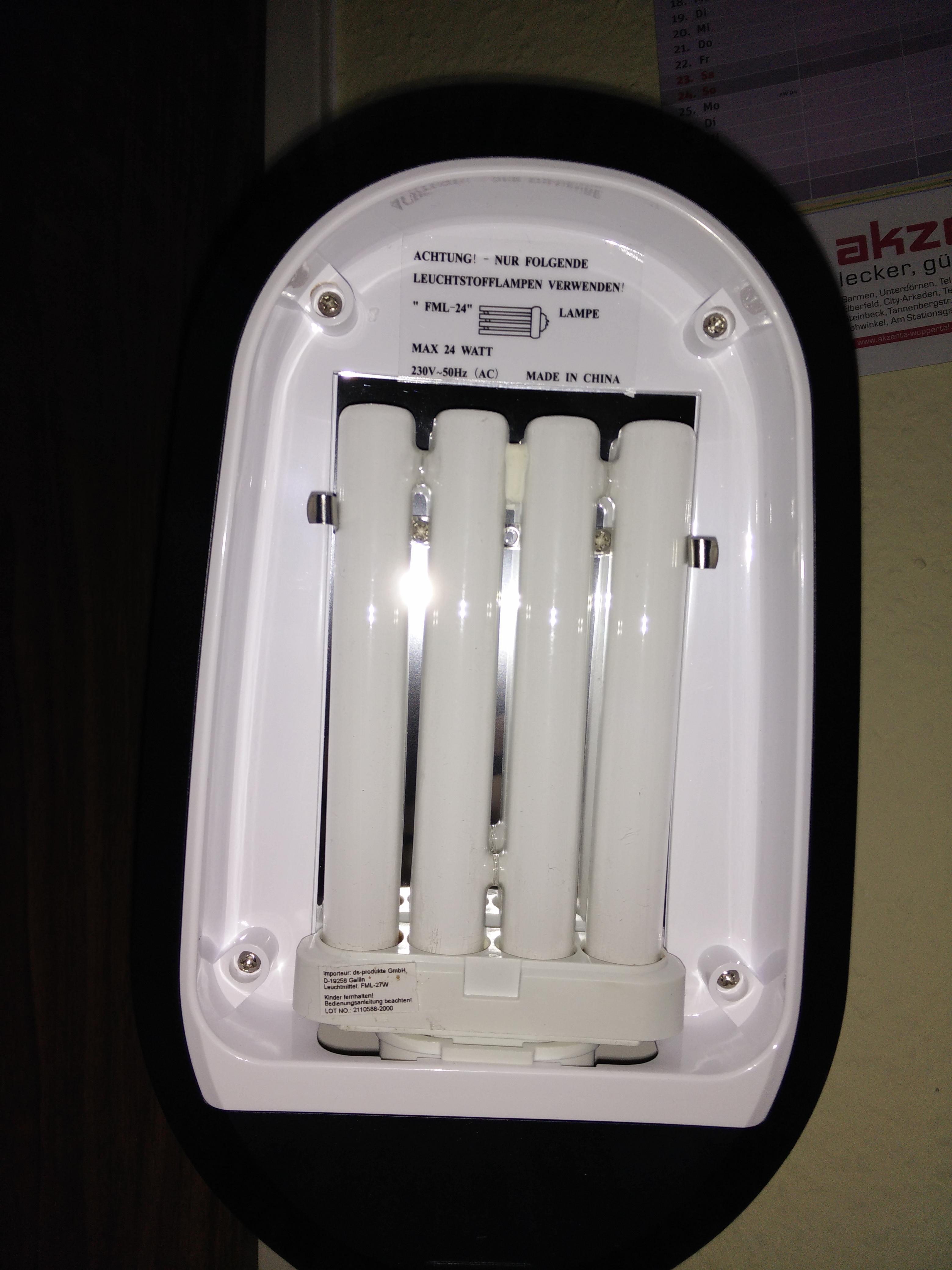 Ich hatte zu Weihnachten eine ziemlich stylische Tageslichtlampe bekommen (+ Zusatz-Leuchtstofflampe).