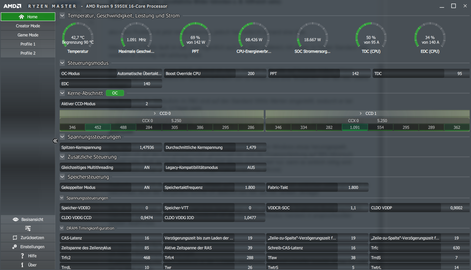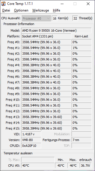 Mein Ryzen 9 5950x läuft im Idle (und eigentlich auch bei allem anderen) mit einem zu hohen Standard-Takt, wodurch er unnötig viel Leistung frisst.