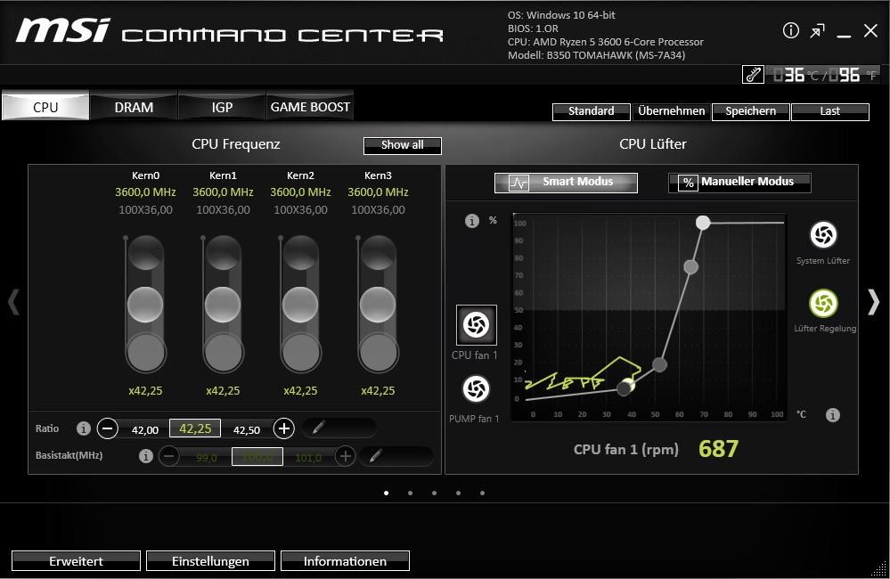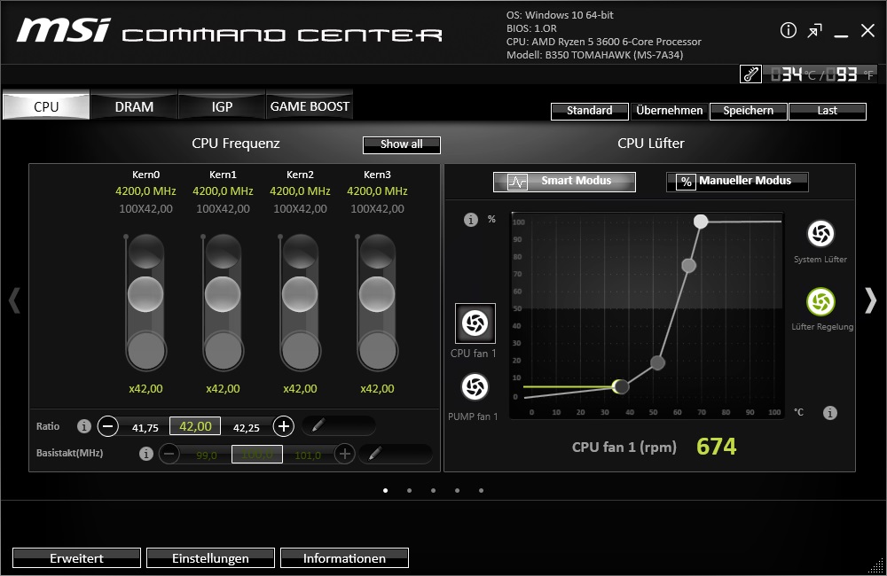 Fall 2: Fix auf 4,2 GHz eingestellt und es läuft total ruhig...