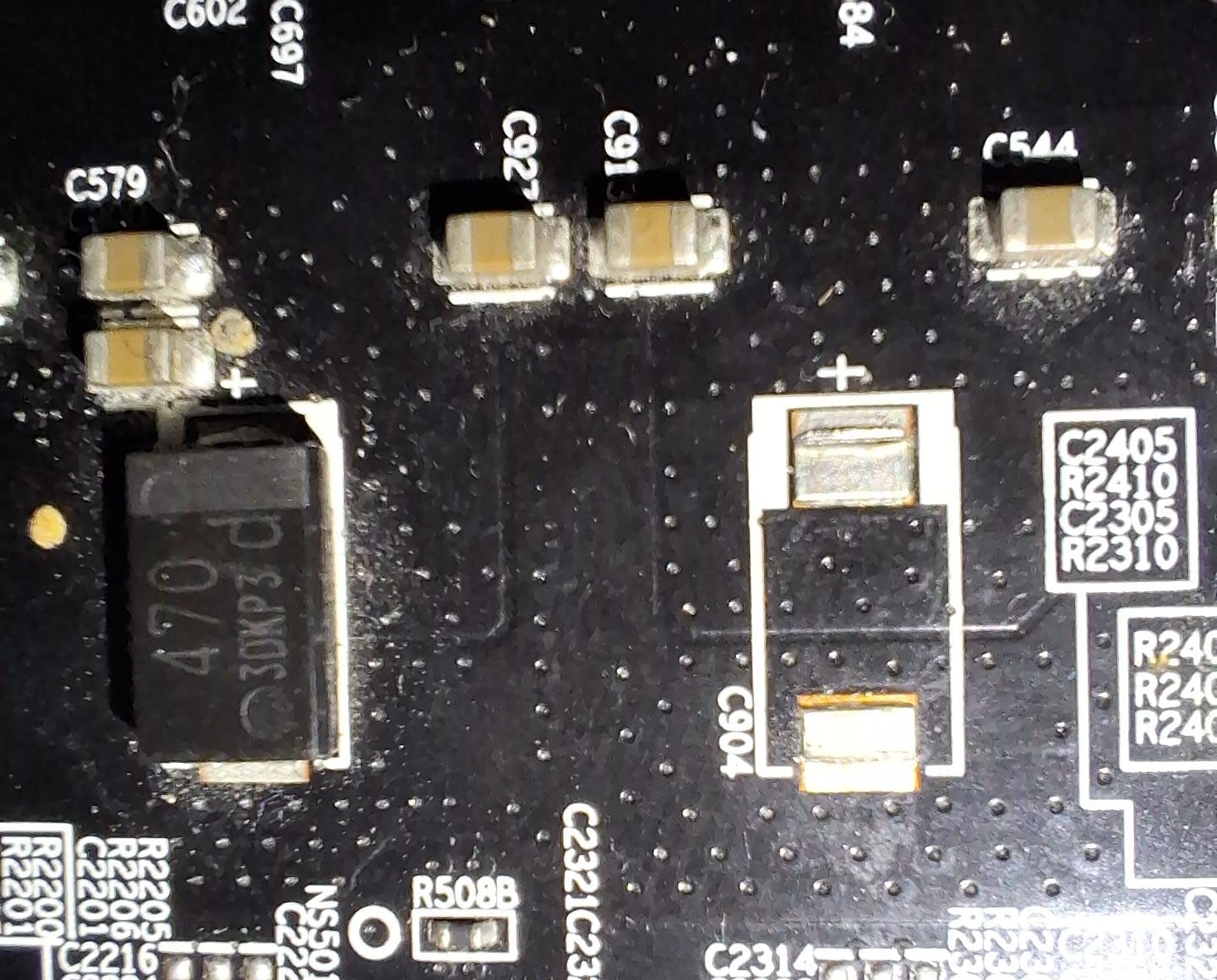 Der zu ersetzende Kondensator sitzt direkt vor den Spulen der GPU. Ich hab ehrlich gesagt keine Ahnung was die ESR von dem Ursprünglichen Kondensator war und auch nicht von den Anderen die ich hätte.