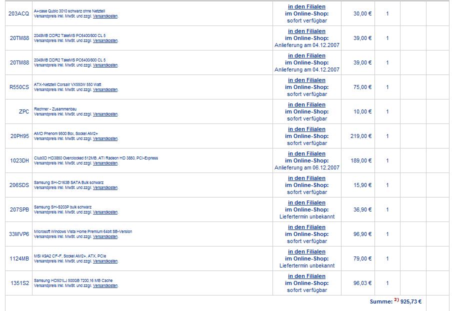 hier habe ich aktuelle liste, bis auf grafikkarte und gehäuse sind alle teile nächste woche verfügbar,