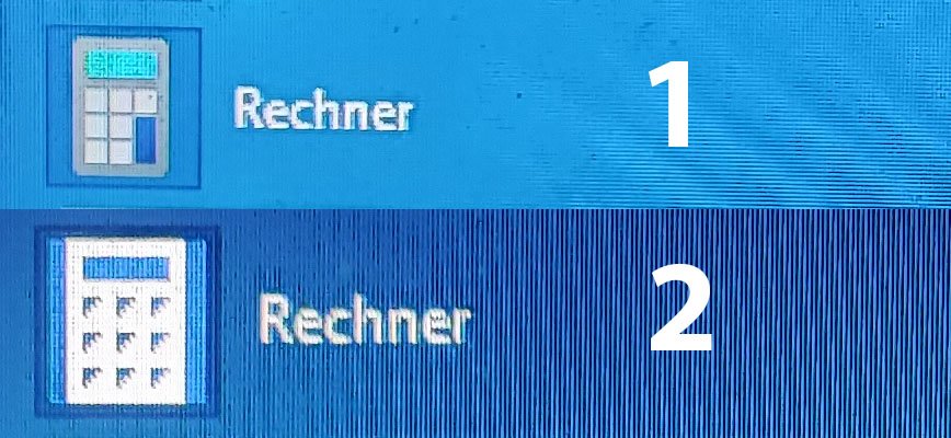Vor dem Neustart sah mein Taschenrechner Symbol so aus wie auf dem Bild die 1.