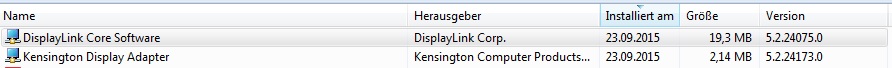 Im Taskmanager ist tatsächlich ein Prozess "Display Link Kensington Support" und "Display Link User Agent" und "DisplayLink UI".