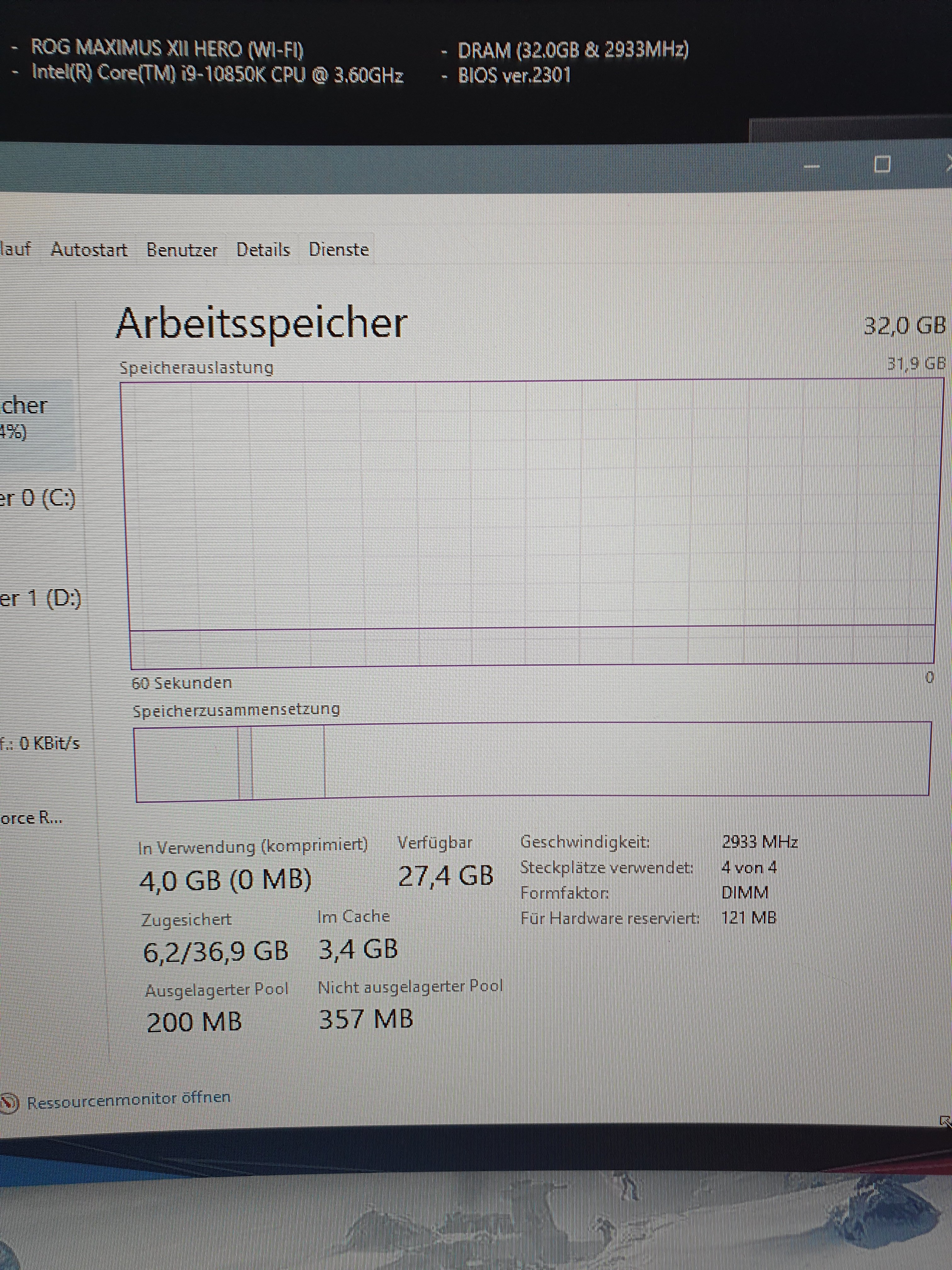 Ich hoff jemand kann mir helfen und erst einmal sagen warum mein Task Manager die Werte des Arbeitsspeichers nicht vollständig liest.