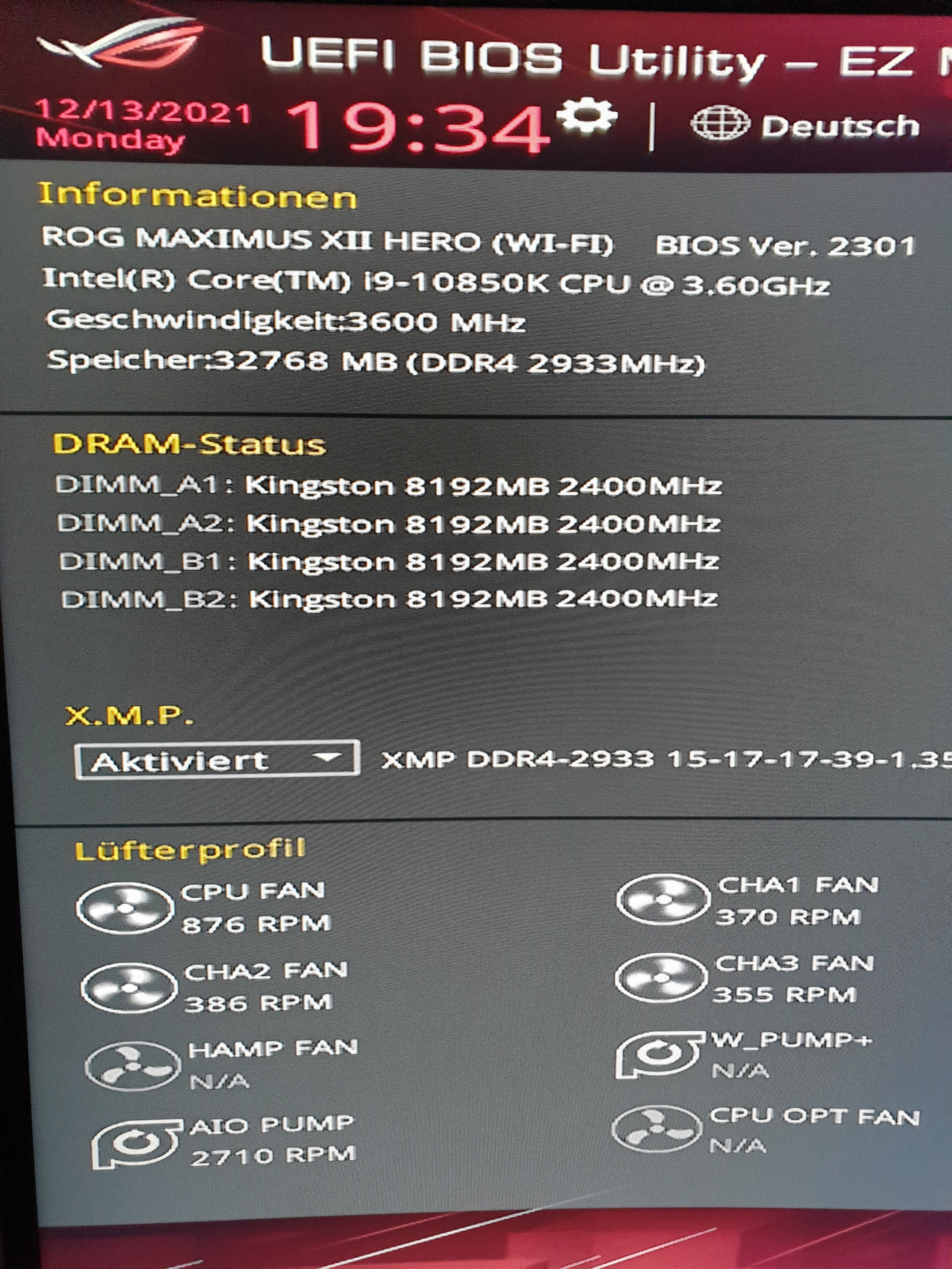 Gleichzeitig hab ich das Problem das im BIOS selber (X.M.P ist aktiviert) mir nur 2400mhz anstatt 2933mhz angezeigt werden.