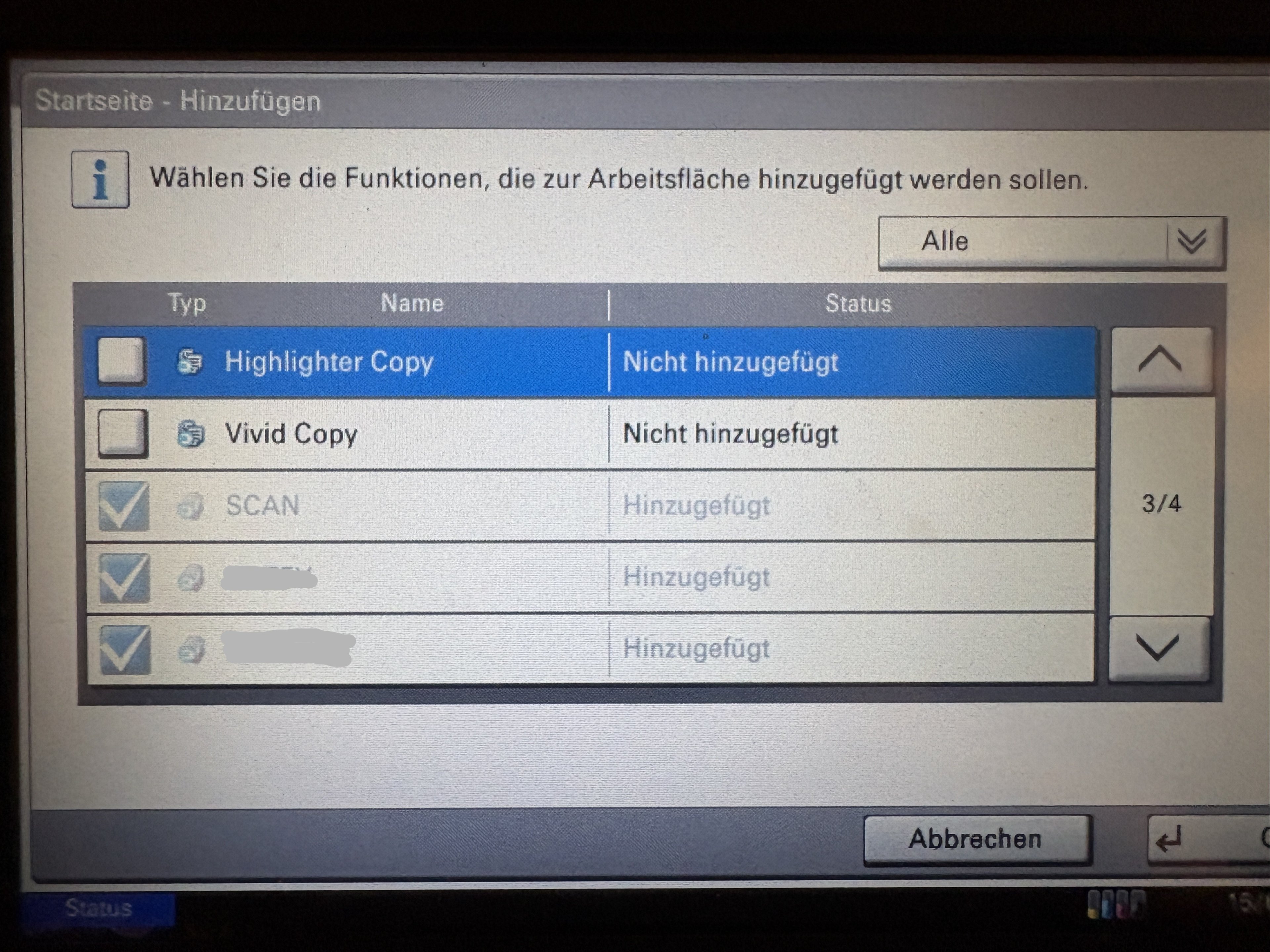 bei einem Multifunktionsgerät von KYOCERA - TASKalfa 2552ci versuche ich die Arbeitsfläche anzupassen.