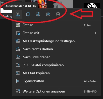 Reicht es nicht das Kopieren und Einfügen sorry dämlicherweise in ein Untermenü gerutscht ist ..... Genauso wie alle WinRAR Optionen