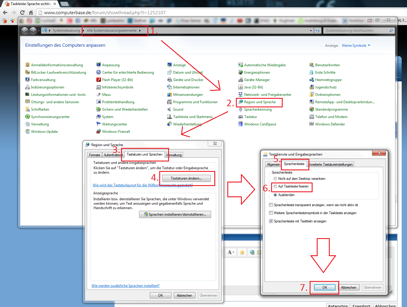 Wenn ich jetzt unter Tastaturen und Sprachen und dann unter Sprachleiste auf " auf taskleiste fixieren" passiert leider nichts. Weiß einer wie ich das hinbekomme?