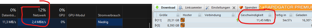 habe einen neuen Laptop, Helios Neo 16. Dort ist ein Intel Killer(R) Wi-Fi 6E AX1675i 160MHz Wireless Network Adapter (211NGW) verbaut. Kurioserweise zeigt er bei einem Prozess im Taskmanager nie die korrekte DL Geschwindigkeit an, unter Leistung stimmt es.
