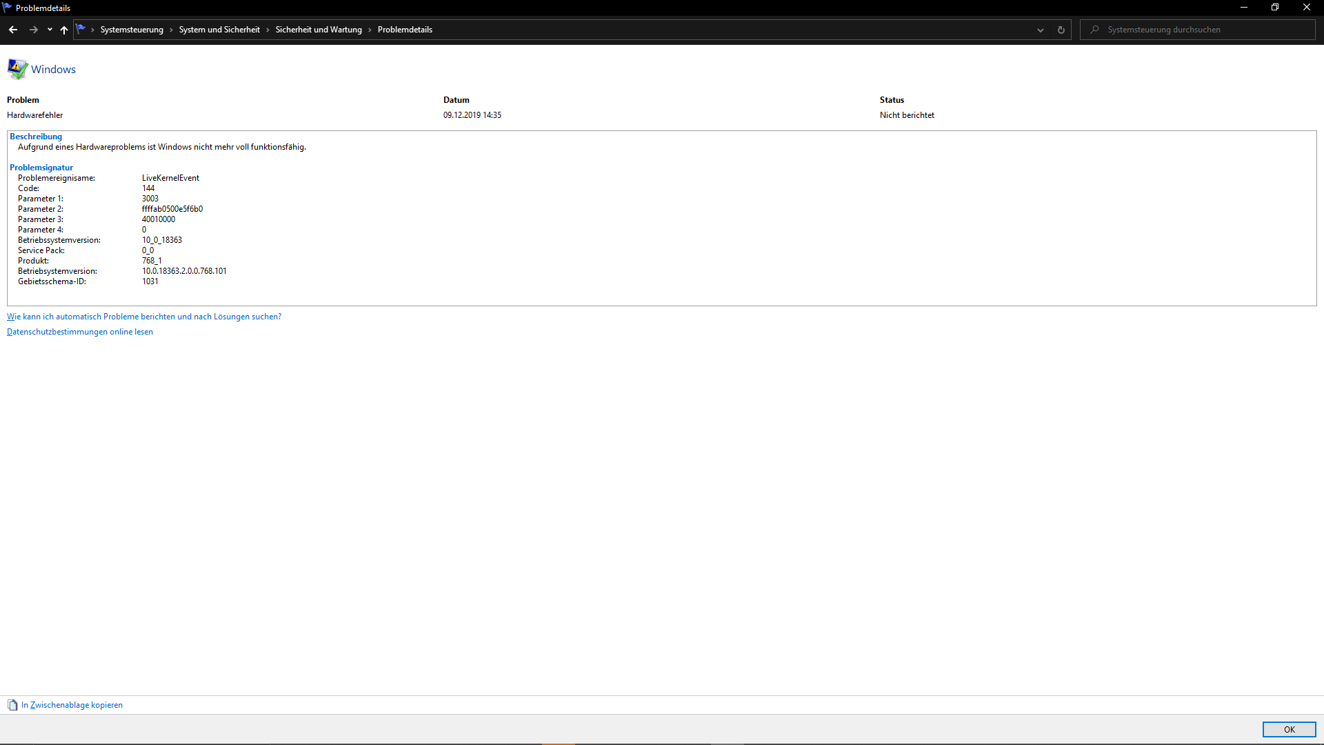 Und hier ist das Problem vor einigen Wochen was aufgetreten ist. Da hat die Tastatur auch ab und zu nicht funktioniert.