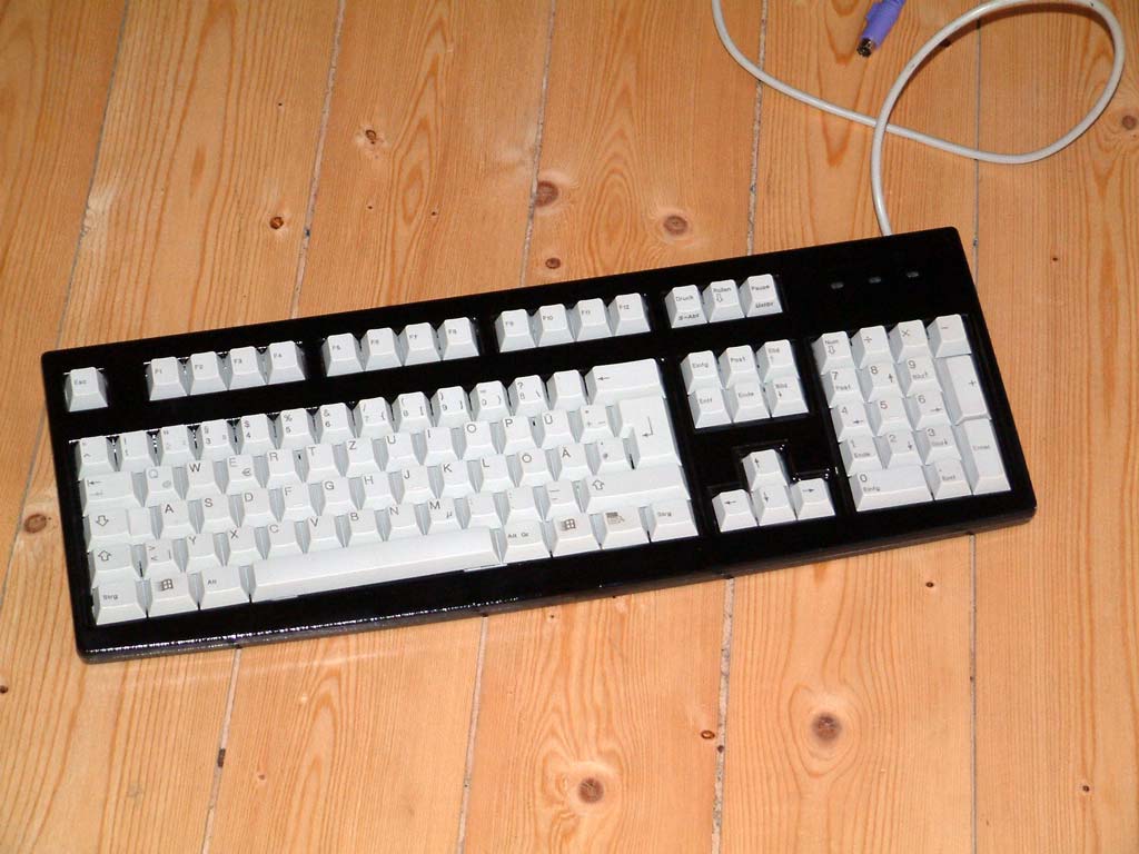 hab vor ein paar Tagen mal meine Tastertur auseinandergebaut zum Saubermachen, und da bin ich auf die idee gekommen, dass man ja die Ober- und Unterseite mal Lackierten könnte.
