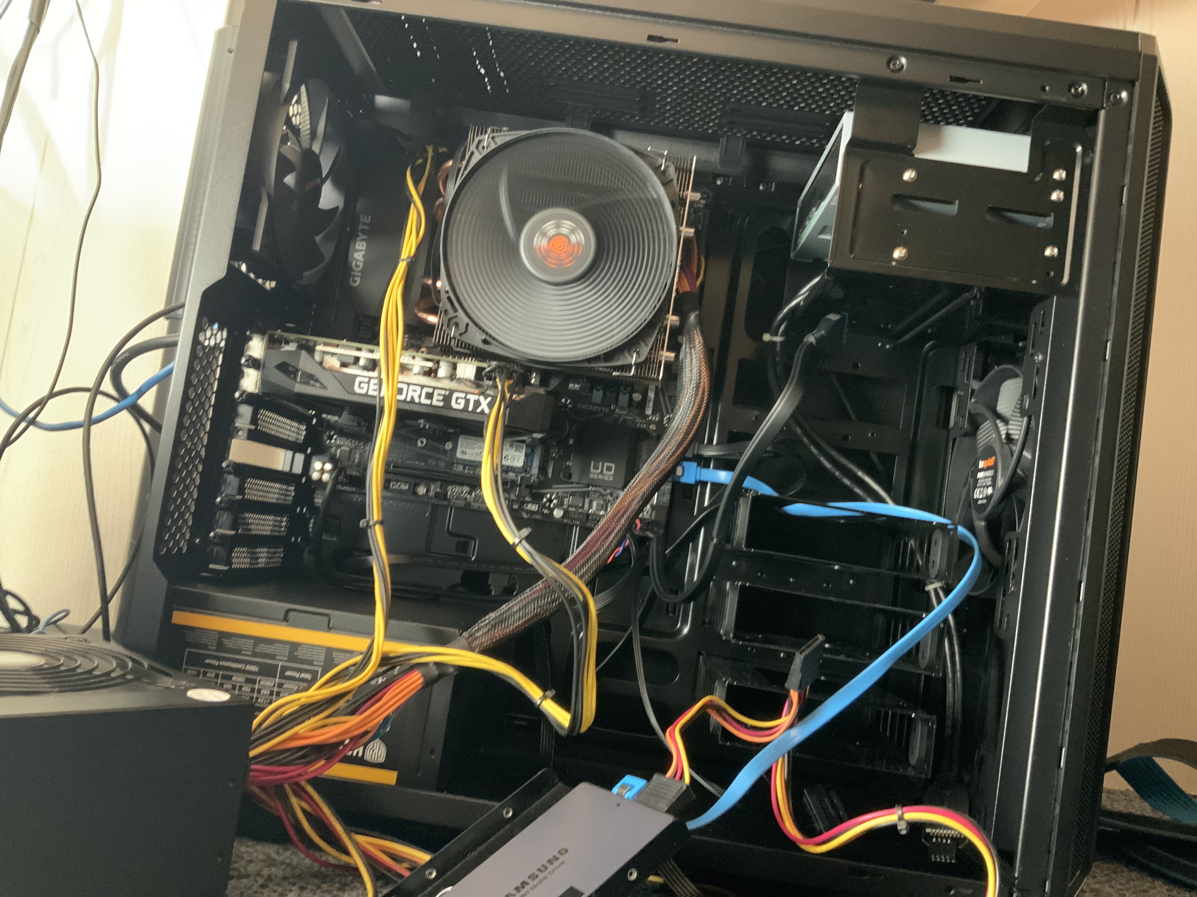 da bin ich mal wieder mit einem neuen Problem. Ich habe heute einen Rechner neu zusammen gebaut. Erst ging gar nichts nur ein Dauer Intervall piepsen. Ich habe vier 8gb Module und nach zig versuchen mt allen Riegeln festgestellt das diese wohl nur auf A1 und A2 laufen. Zu allem Überfluss startet das Teil jetzt und mir wird der Bildschirm mit Gigabyte Ultra durable mit den Optionen DEL F12 und END angezeigt, doch ich kann machen was ich will, keine Tastatur reagiert auf Eingaben. Habe es mit der logitech über Bluetooth wie immer versucht und mit einer ps2 Tastatur. Nichts geht, ich werde echt verrückt. Was kann ich da noch tun?
