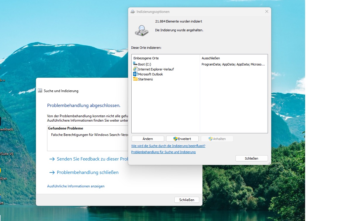 Ich bin ratlos woran das liegen könnte. Die Problembehandlung unter Windows bezüglich Suche hab ich schon durchlaufen lassen. doch keine Änderungen.