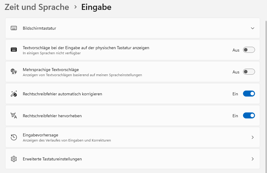 Unter Einstellungen>Zeit und Sprache ist Deutsch eingeschaltet.