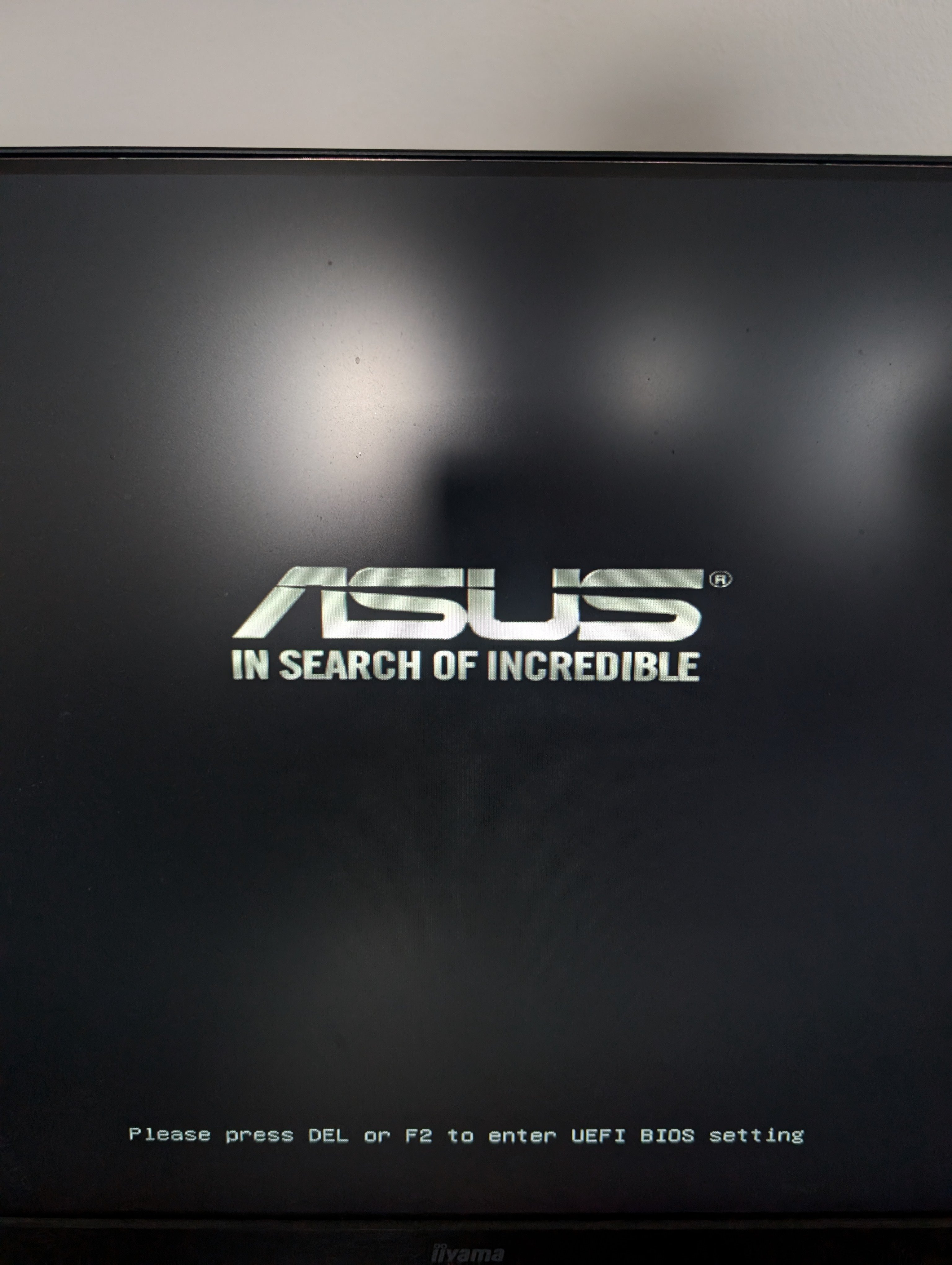 Nach dem Einschalten kurz gestartet(~1 sek), ist dann einige Sekunden dunkel geblieben und ist dann zu diesem Bildschirm gestartet. Dann musste ich durchs Bios, aber da ging es noch und ich konnte den PC hochfahren.