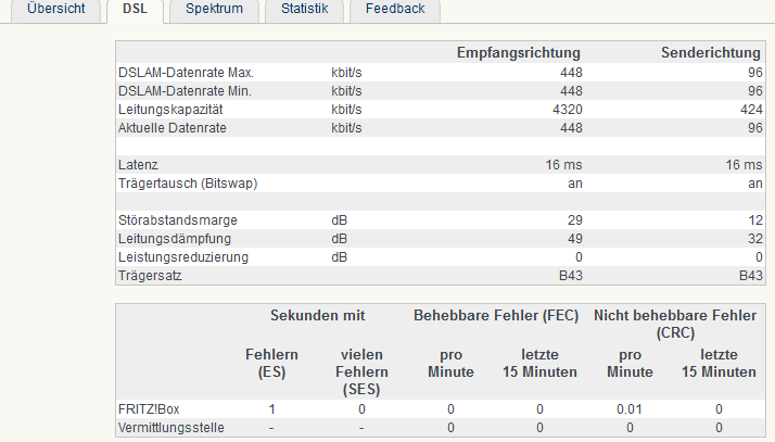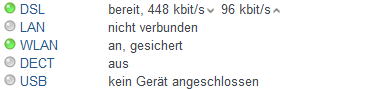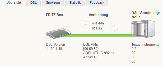 Den Router (FRITZ!Box 7360) habe ich heute bekommen und direkt angeschlossen. Nun sehe ich im Routermenü das DSL grün leuchtet und dahinter "bereit, 448k/bit up, 96k/bit down" steht.