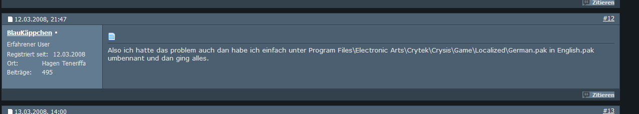 Aber jetzt muss ich mir was einfallen lassen wie ich Crysis 1 zum laufen bringe. Mal gucken ob es da fixes gibt.