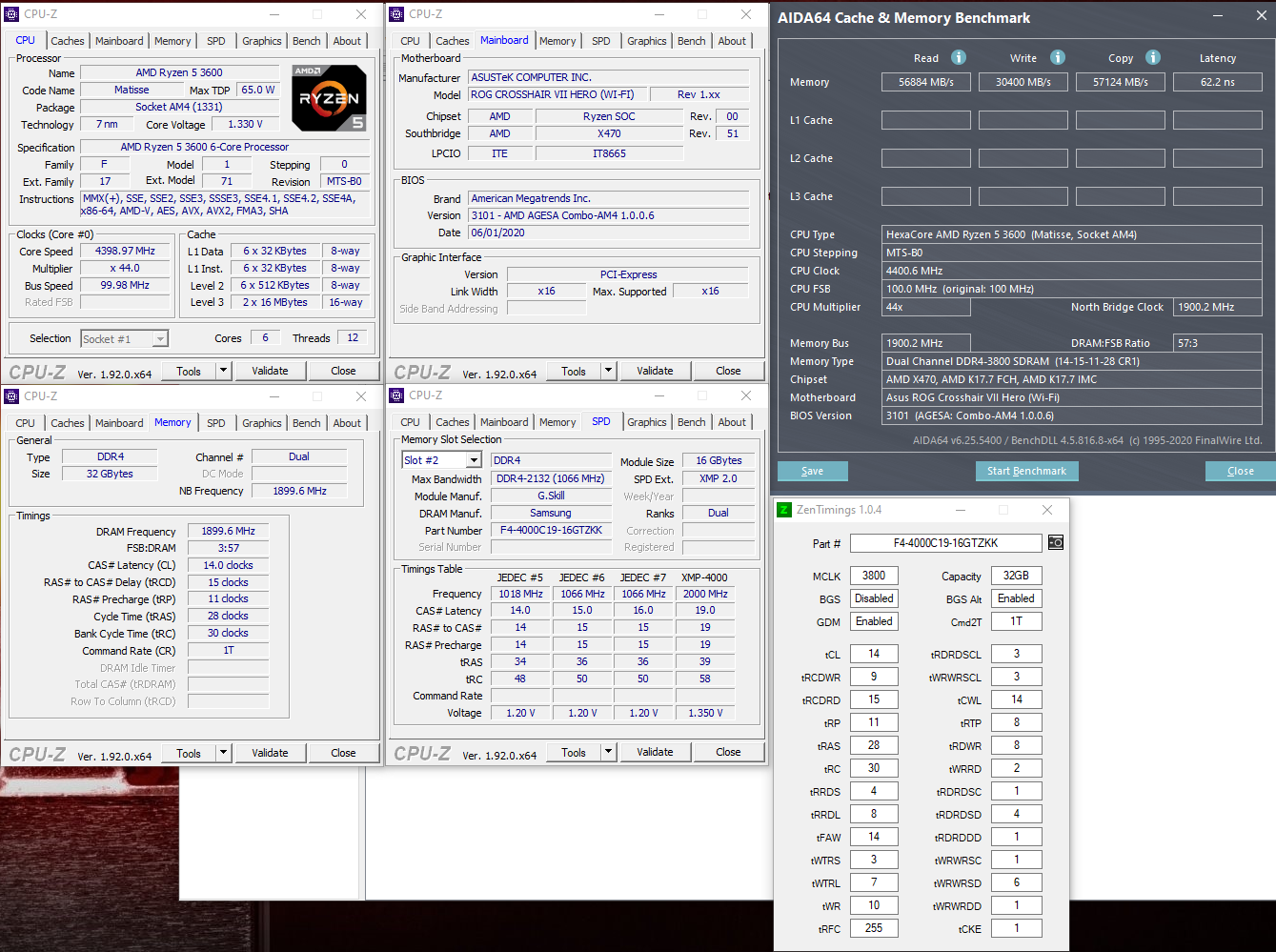 Gskill 4 x F4-4000C17 läuft auf 3800 15-15-15-15-30 T1 @ 1.56 Volt mit 1900 FCLK 1:1:1