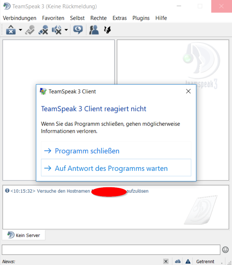edit : verbinde ich mich direkt mit der IP hängt sich TS direkt nach dem klicken auf verbinden , also das ist dann noch schlimmer...