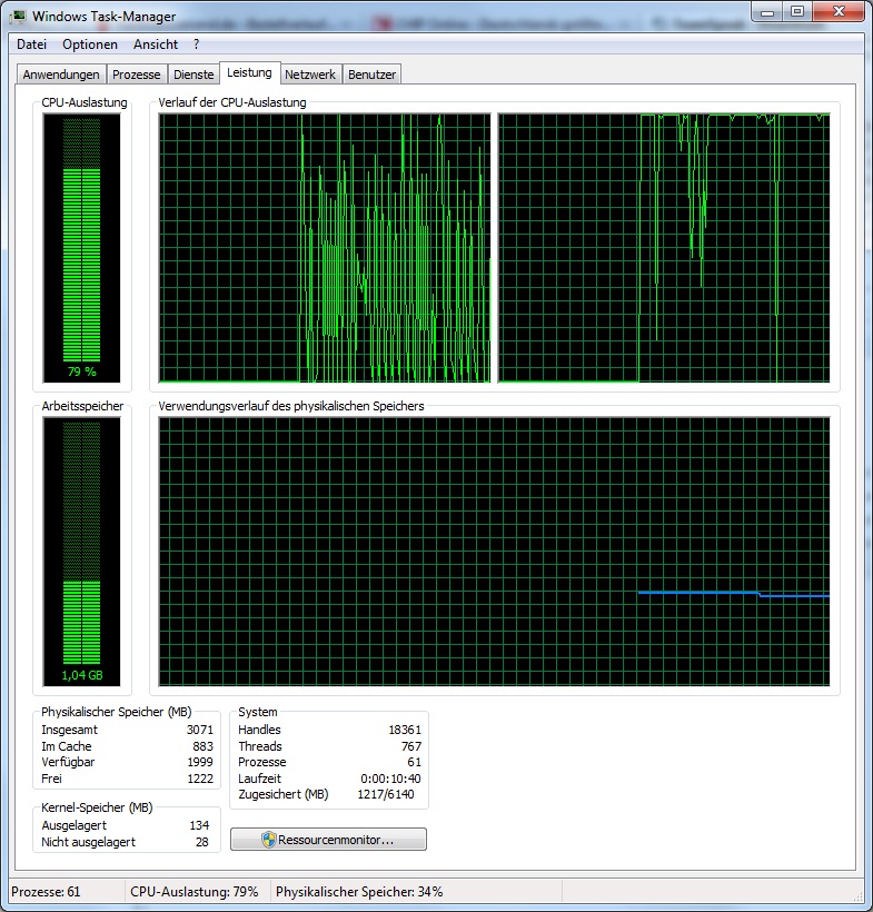 Außedem fängt der PC an rum zu zickenm, das heißt er läuft dann auch etwas stockend, musik wird in 2sekunden takt abgespielt und andere Anwendungen inkl. Internt usw. unmöglich