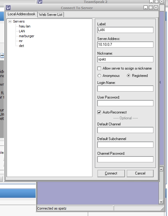 ok es ist so ich möchte mit einem kumpel über netzwerk ( also localnetwork) counterstrike source zocken. nun ist die verständigung doch recht schwer da wir in unterschiedlichen zimmern hocken. Ich habe gehört das teamspeak auch offline funktioniert. Kann mir bitte jemand eine ganz detalierte anleitung geben was ich tun muss ? Bitte. Achso und es wären zwei rechner ( der von mir und der von meinem kumpel ). Also ich würde mich ganz sehr über ein paar antworten freuen.