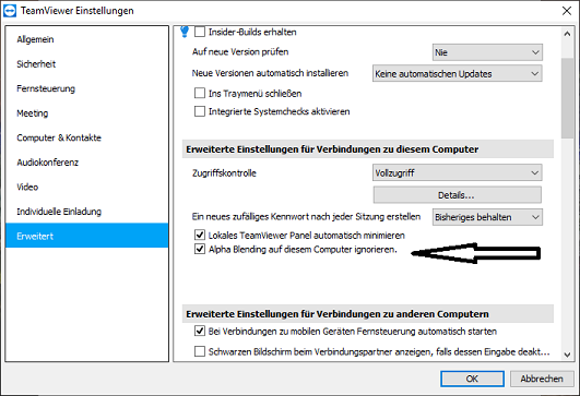 Nach der Eingabe der ID und des Passwortes hängt Teamviewer bei "Initialisiere Anzeigeparameter".
