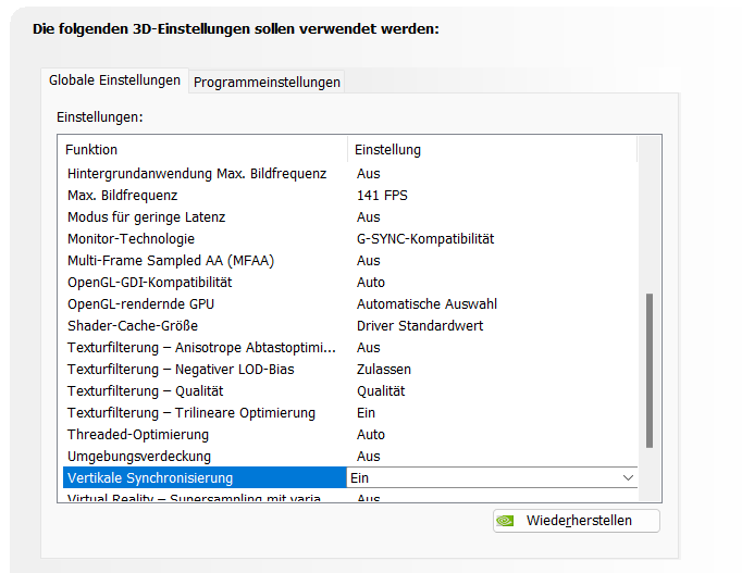Dem Game im Nvidia Treiber Vsync zuweisen [Gsync AN lassen].