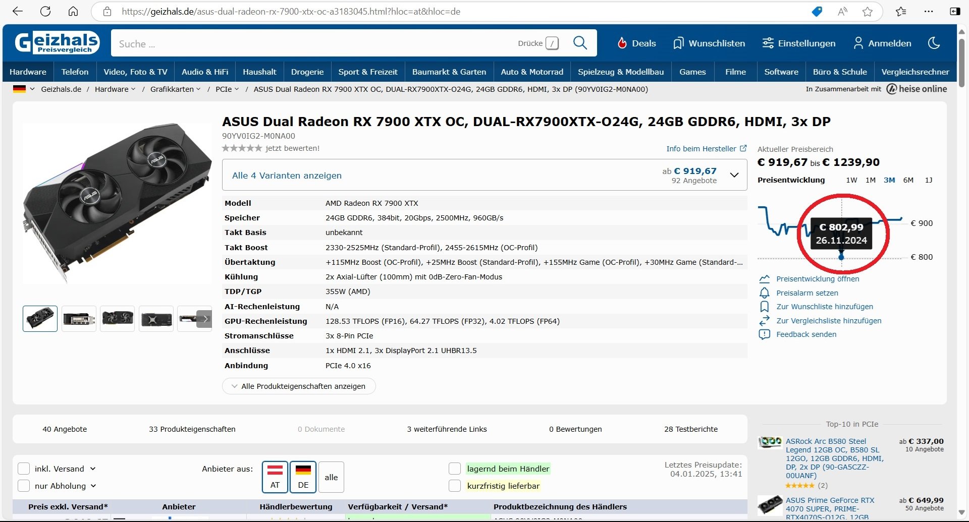 Und Ende November für ca. 800 € !blackiwid schrieb:Die 7900 xtx gabs im Dezember auch schon für 860 Euro also sind 899 kein guter Preis nicht täuschen lassen!