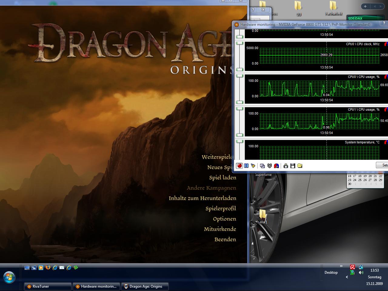 ich habe folgendes Problem: Schon bei Risen stockte mein Spiel in unregelmäßigen Zeitabständen. Es läuft einwandfrei ohne einen Hauch von einem Ruckler und plötzlich stockt es es wieder für einen Moment. Unabhängig davon welche Grafikeinstellungen ich vornehme. Ich habe also vermutet dass es sich um ein Problem handelt welches nur bei Risen auftritt da ich vorher nie Probleme hatte. Jetzt habe ich mir Dragon Age besorgt, und nach einem problemlosen Start treten nun ähnliche Probleme auf , es läuft ohne Probleme und dann ruckelt es plötzlich wieder , schon in Anfangsvorschau in der das Bioware Zeichen kommt. Da es sich in DA um einen Zeitabstand von 30 sekunden zwischen den Rucklern handelt ist das Problem jetzt unerträglich geworden und ich hoffe jemand von euch kann mir helfen. Ich hab mal eine Runde Cod 4 angeschmissen und hier tritt das Problem nur ganz leicht auf.