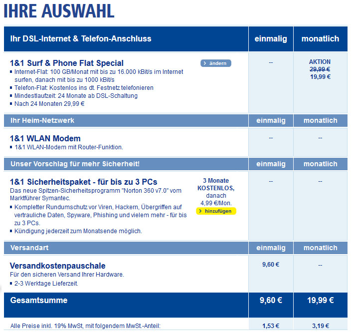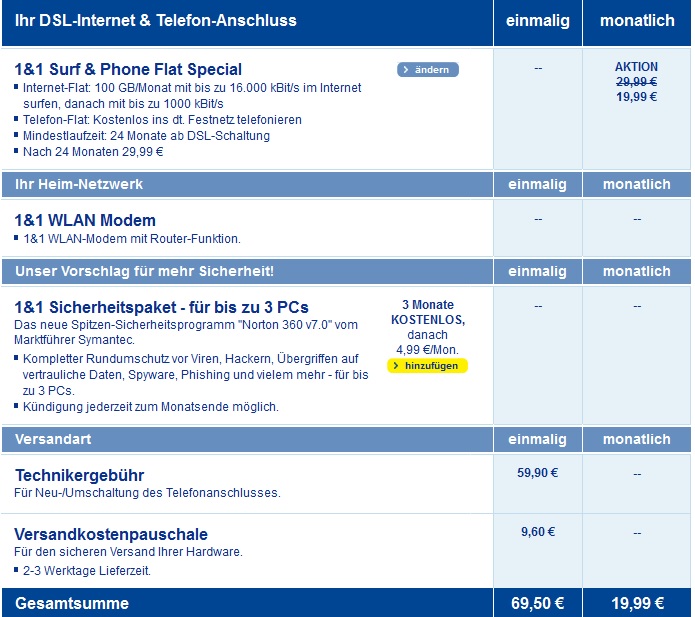 Aber bei dem Tarif kommen einmalig Techniker Gebührer dazu, von gleich mal 60€.