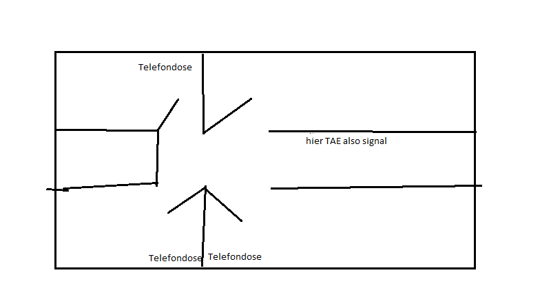 Auf dem Bild hab ich kurz & einfach mal eine Skizze gemacht. Nun geht es darum das der Splitter mit Modem etc. im Flur steht. der Rest in dem Zimmer unten links (siehe Bild). Ist es nicht möglich einfach die Telefondose im Zimmer unten links zu benutzen?! Wo aber leider kein Signal drauf ist :\