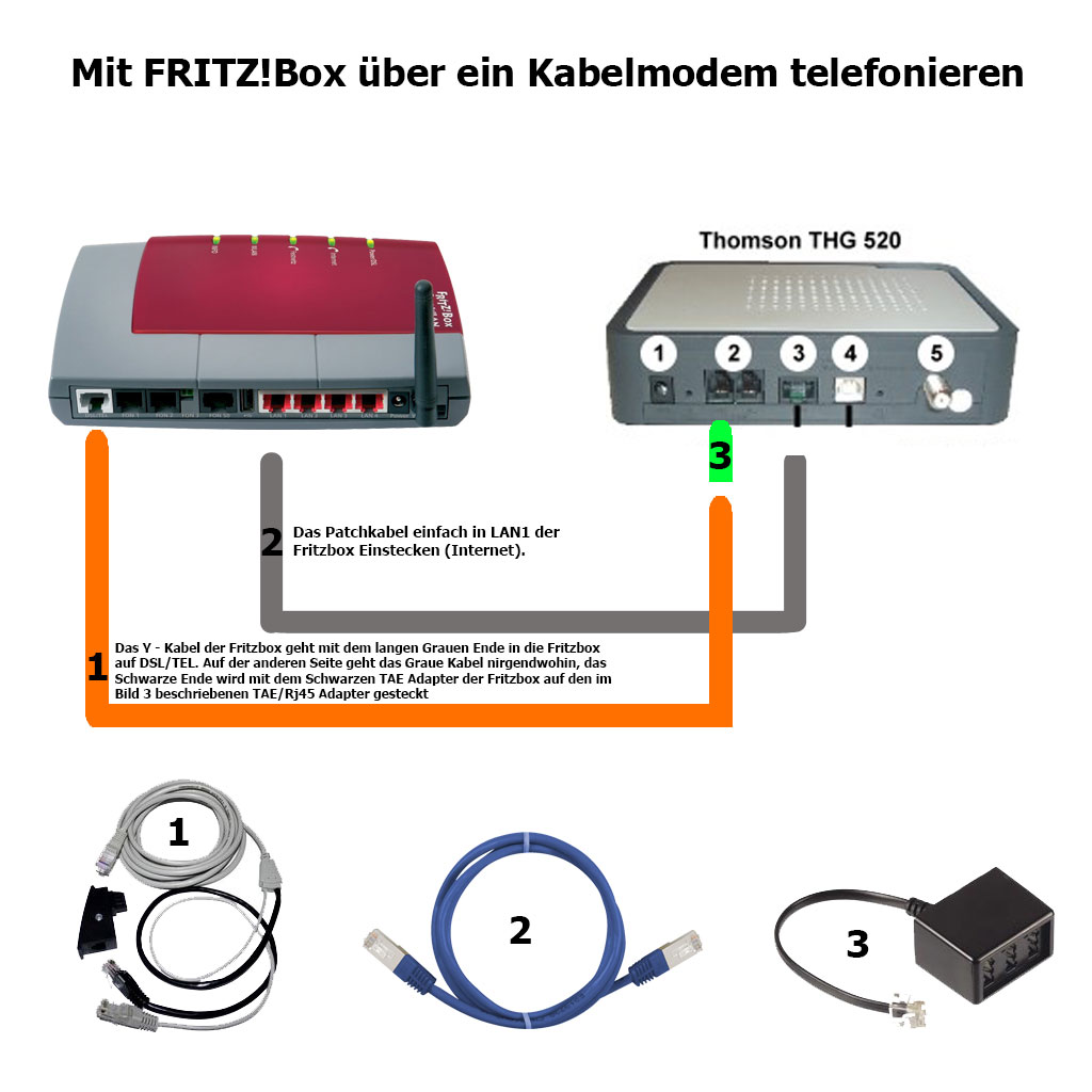 Die Fritzbox ist über ein Kabelmodem (Motorola SBV 5121E) angeschlossen
