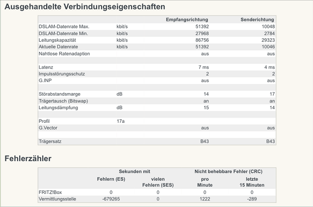 Jedenfalls stimmt bei VDSL 100 alles das weiß ich sicher.