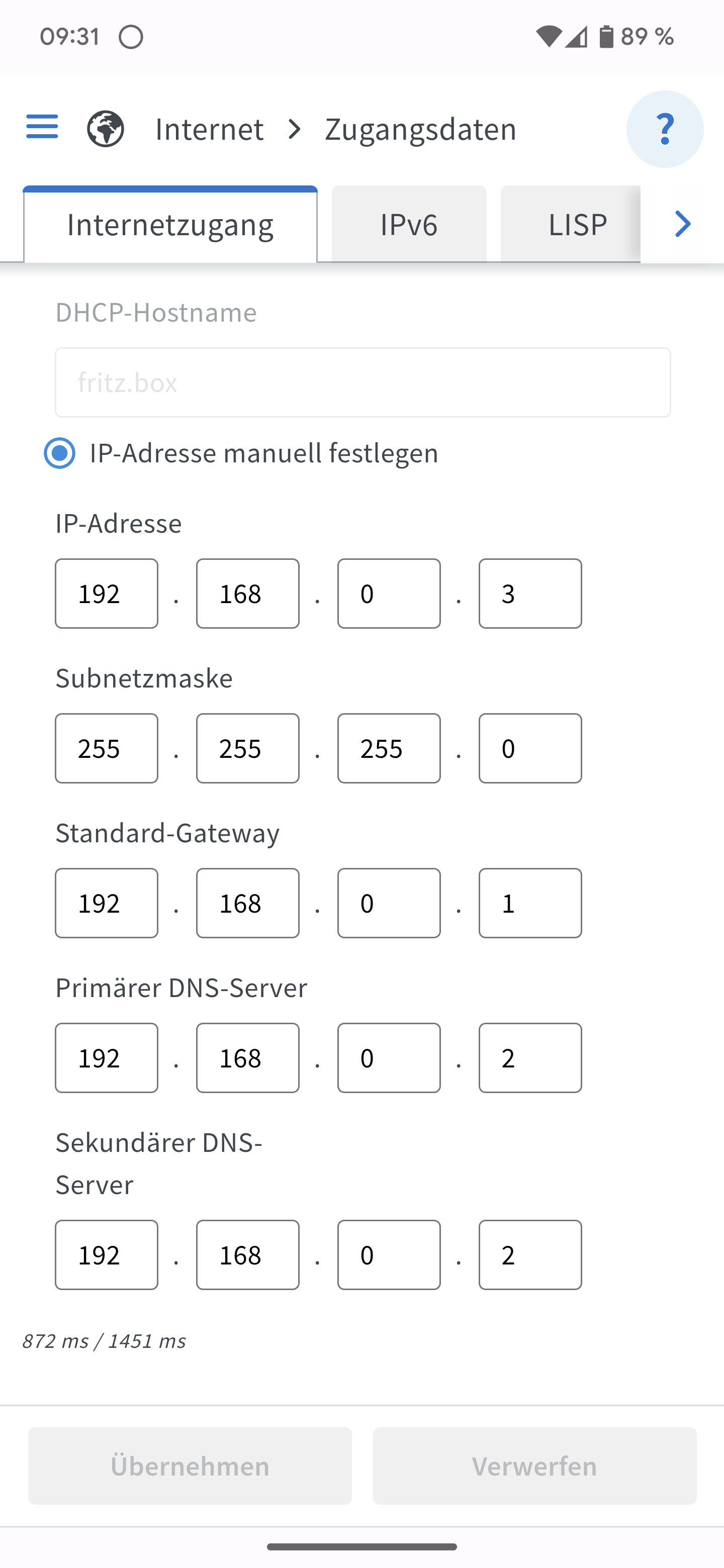 Mangels DSL und Kabel/Glasfaser hängt am Balkon außen gut verstaut ein 5G Modem von ZTE (offen, nicht bei der Telekom gekauft!!) im Bridge-Mode. Daran per Kabel dann innen eine FB 4040. Die FB macht DNS, Router, usw. DNS-Server ist ein PiHole, das läuft auch alles soweit. Also blockt die Werbung, wird automatisch mitgeteilt, ...