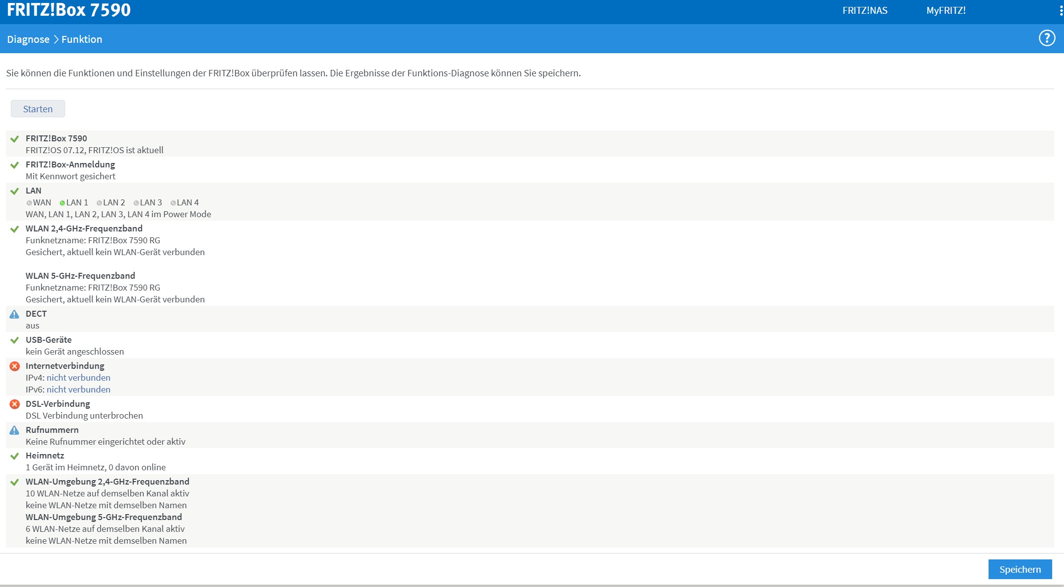 Über den Webbrowser habe ich nun die Fritzbox angefangen einzurichten, nach Eingabe der Telekom Zugangsdaten wurde ein Verbindungstest durchgeführt, dabei kam raus das die Leitung gestört sei und ich konnte im Anschluss die Einrichtung nicht weiter fortführen.