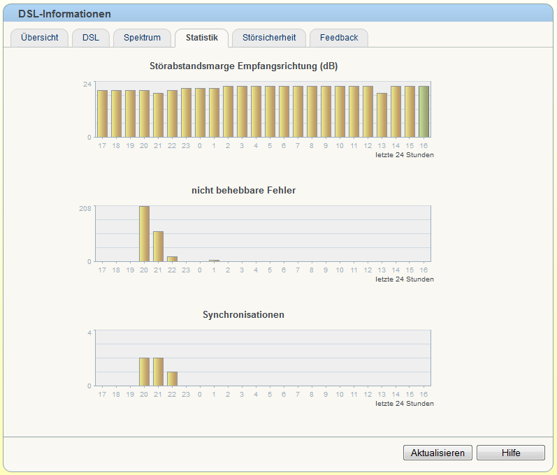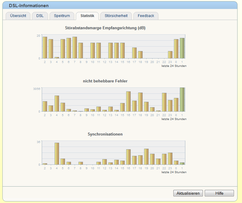 Am Anfang ist das noch recht selten passiert, wurde mit der Zeit immer mehr, wie im Titel beschrieben bis zu 40 resyncs pro Stunde, also praktisch kein Internet, bis heute wo es vielleicht noch 1-3 mal pro Stunde passiert, wodurch online spielen aber immer noch nicht möglich ist. Hinzu kommen massig CRC-Fehler. Aufnahmen im MediaReceiver (Entertain) weisen witzigerweise nicht nur lücken von ~40s auf (Resync), sondern auch kleinere Sprünge (2-3s). Meine Vermutung ist, dass hier die CRC-Fehler sichtbar werden, wodurch dann kleinere Teile ebenfalls fehlen.